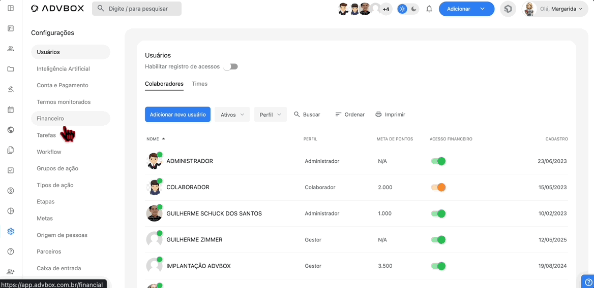 Dica: Configurar corretamente todas as opções do financeiro facilita o controle das finanças do escritório e gera relatórios mais precisos para análise de desempenho.