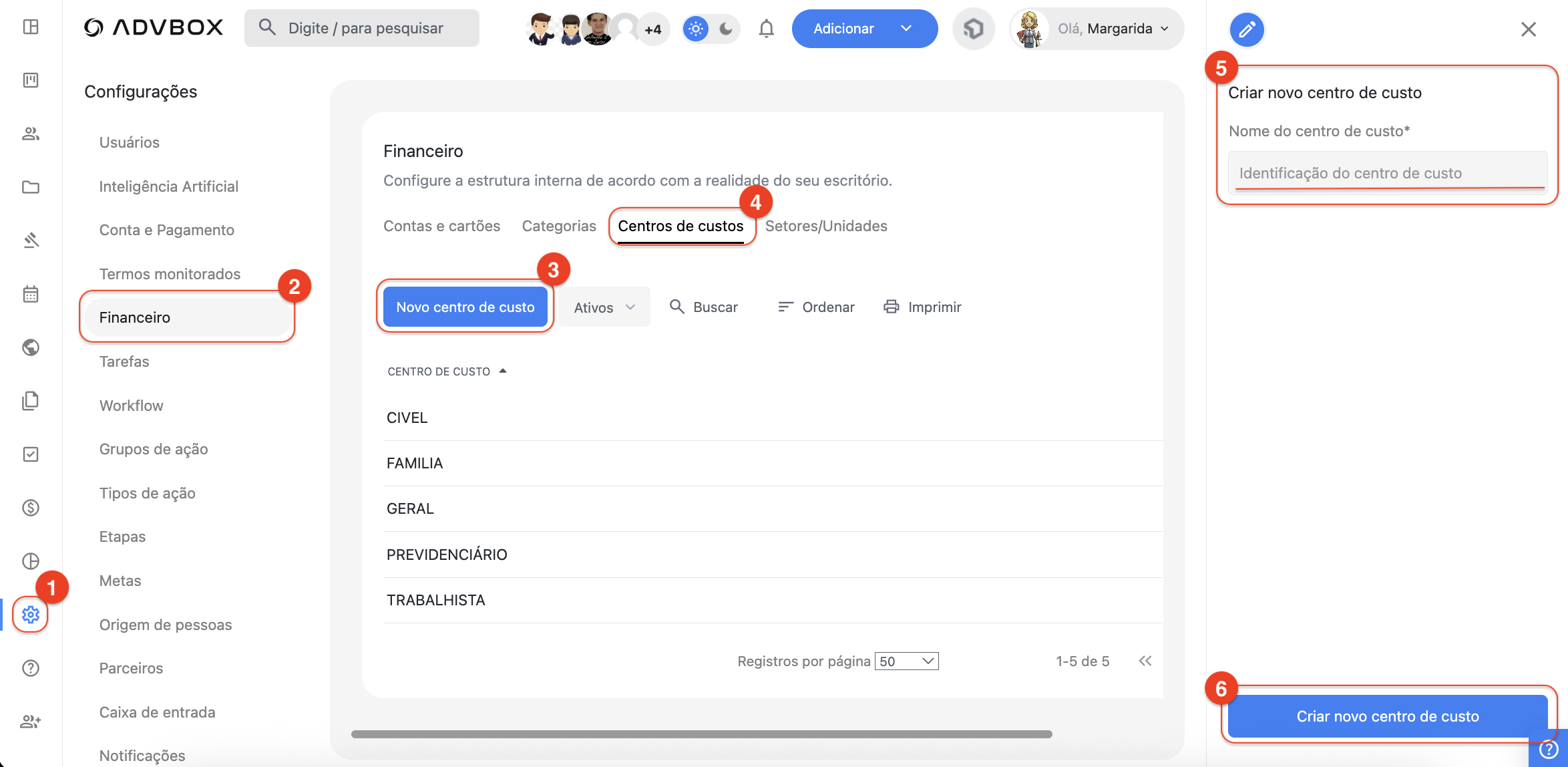 Como adicionar um novo centro de custo