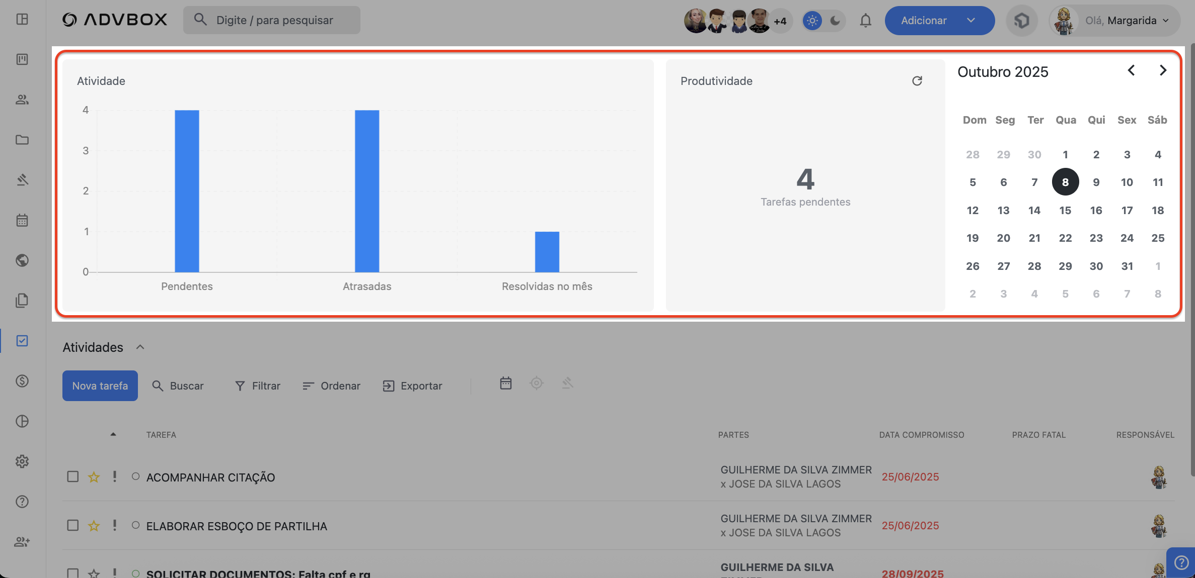 Neste artigo, você vai aprender como utilizar o Menu Atividades da ADVBOX, a central de controle de tarefas do escritório que permite visualizar, organizar, acompanhar e gerenciar todas as atividades da equipe, incluindo métricas de produtividade e filtros avançados.