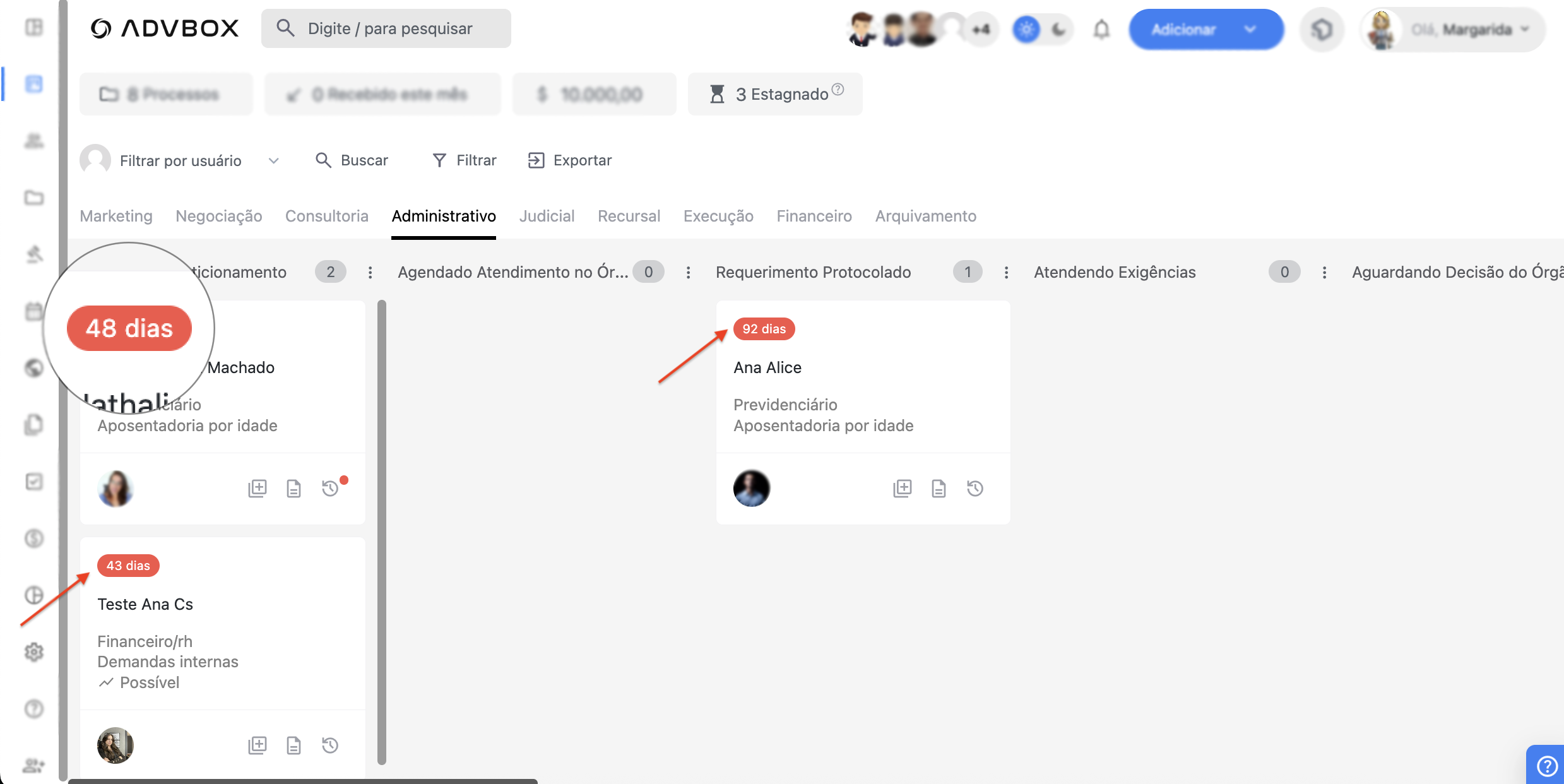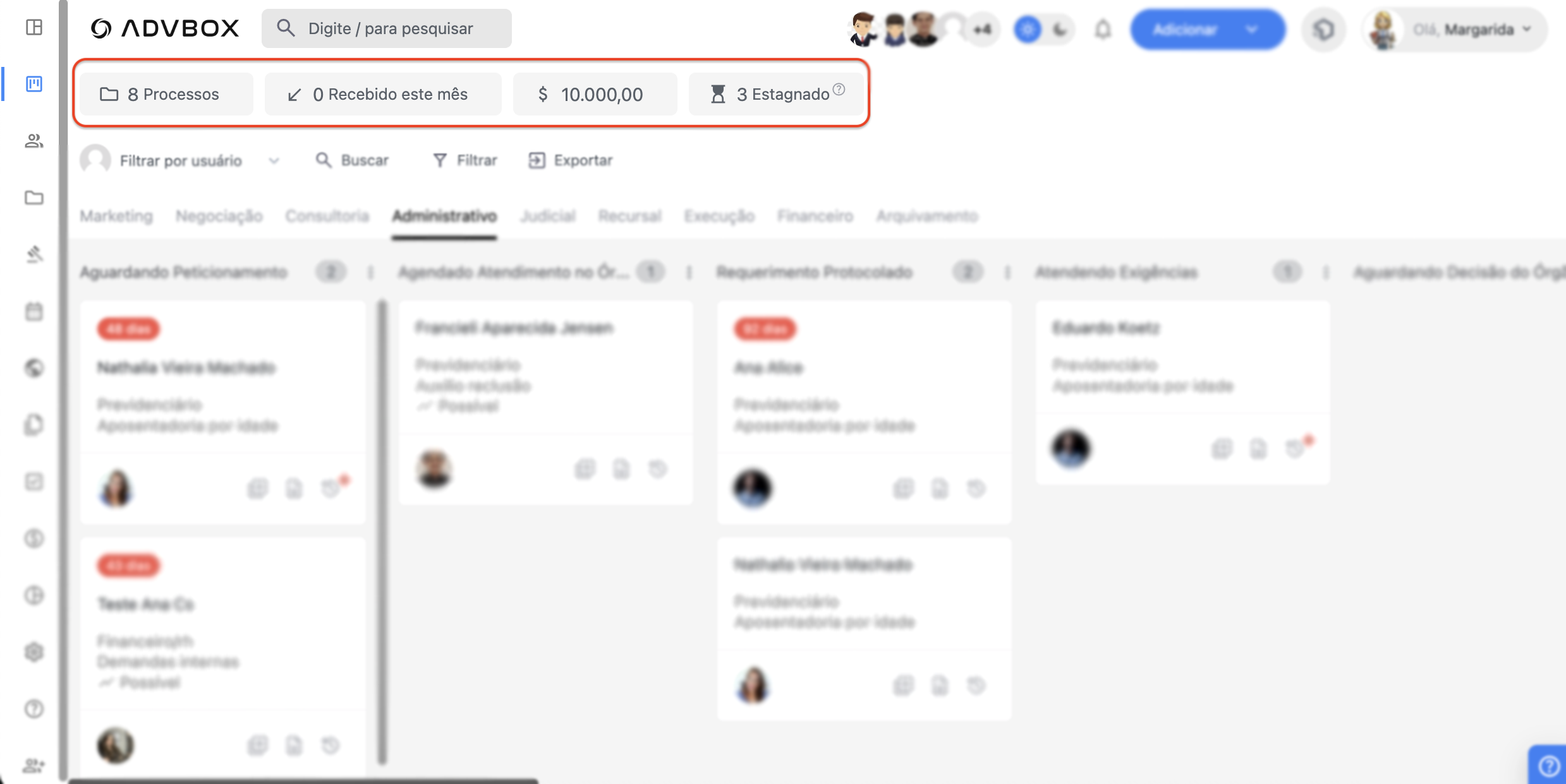 Na ADVBOX, um processo estagnado é aquele que ficou parado na mesma etapa, além do prazo definido, sem movimentações internas relevantes.