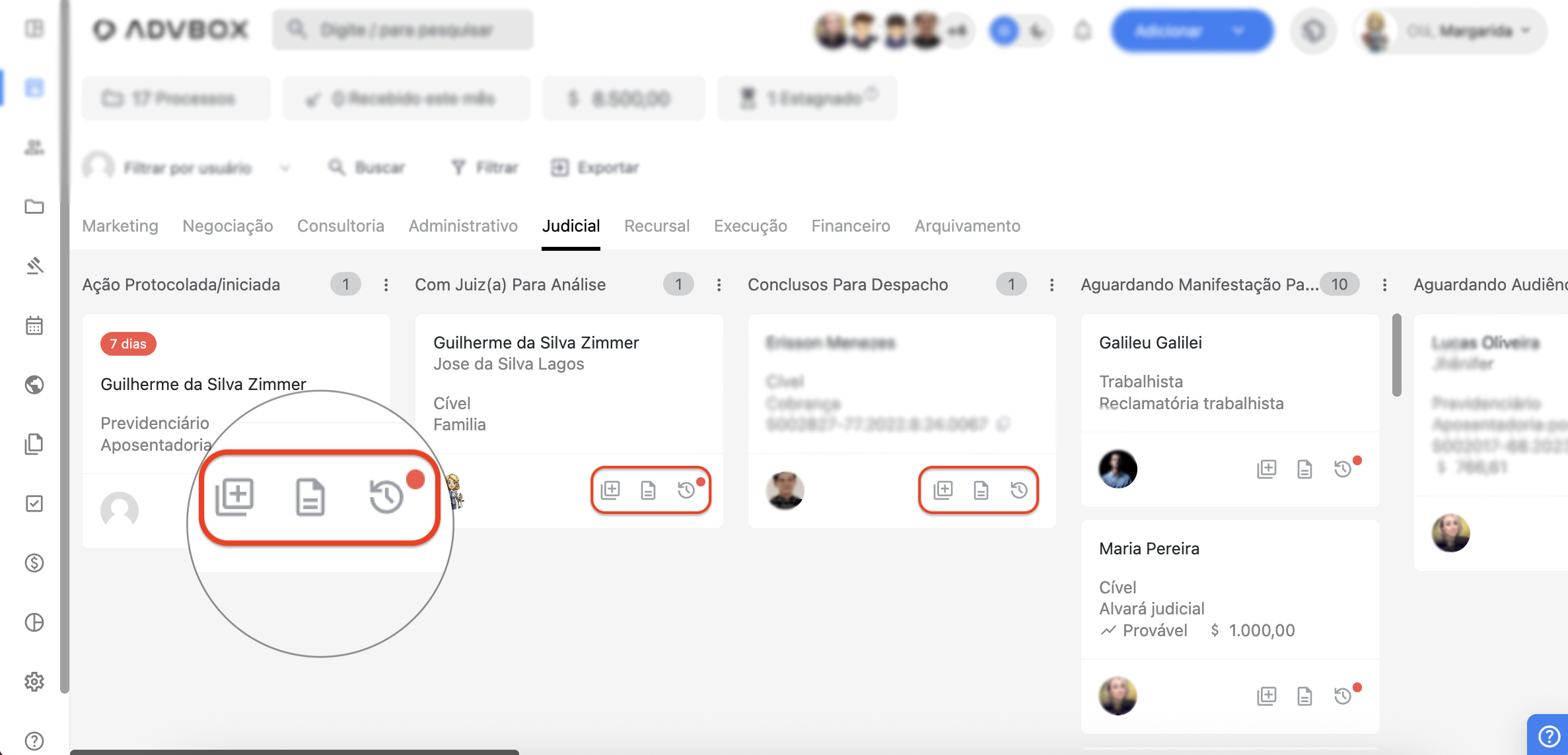 Dica: O CRM da ADVBOX oferece controle completo sobre seus processos, com ferramentas visuais e automações que otimizam o trabalho do escritório e melhoram a comunicação com os clientes.