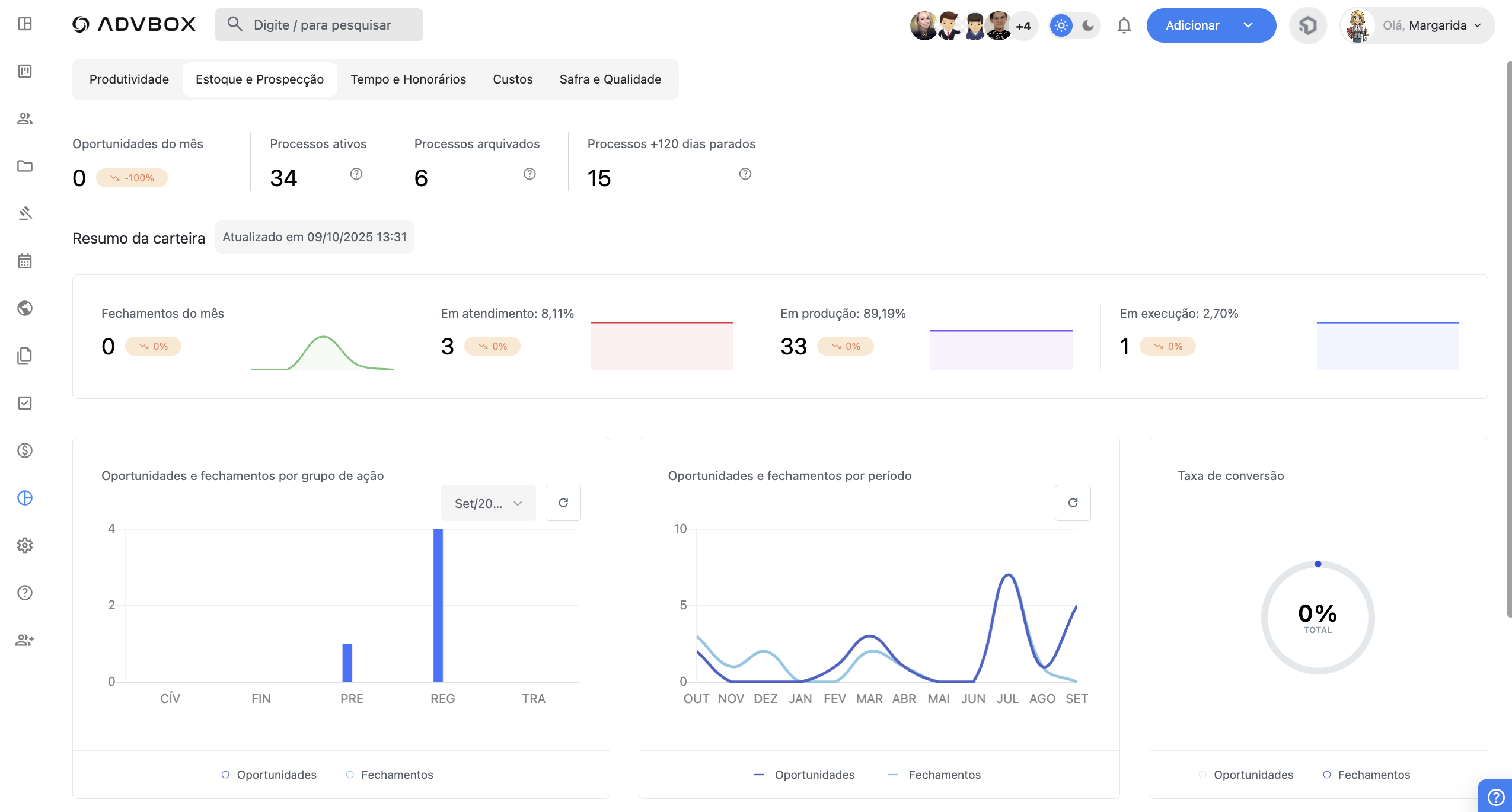 Neste artigo, você vai aprender como utilizar a aba Estoque e Prospecção para análise comercial estratégica, incluindo indicadores de desempenho, gráficos de conversão e relatórios filtráveis para otimizar o funil de contratação do escritório.