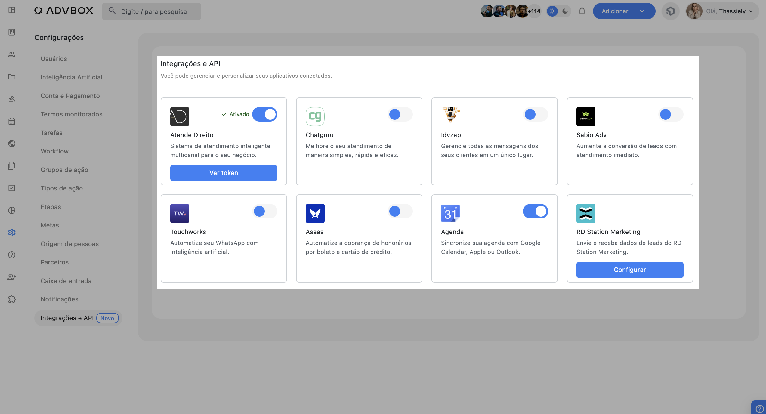 Essas são as integrações atualmente disponíveis na ADVBOX.