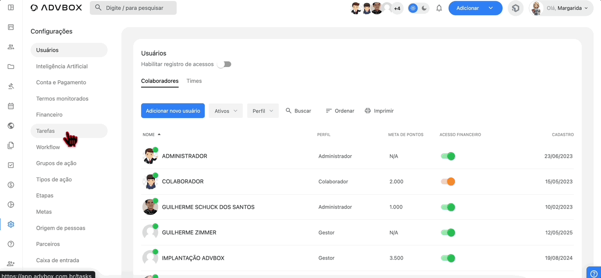 - Tarefas personalizáveis: você pode criar, editar ou excluir tarefas conforme a rotina do seu escritório